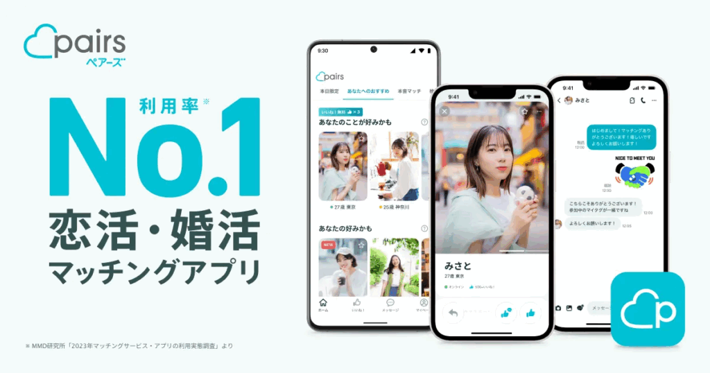 ペアーズ(Pairs)は、国内最大級のマッチングアプリです。